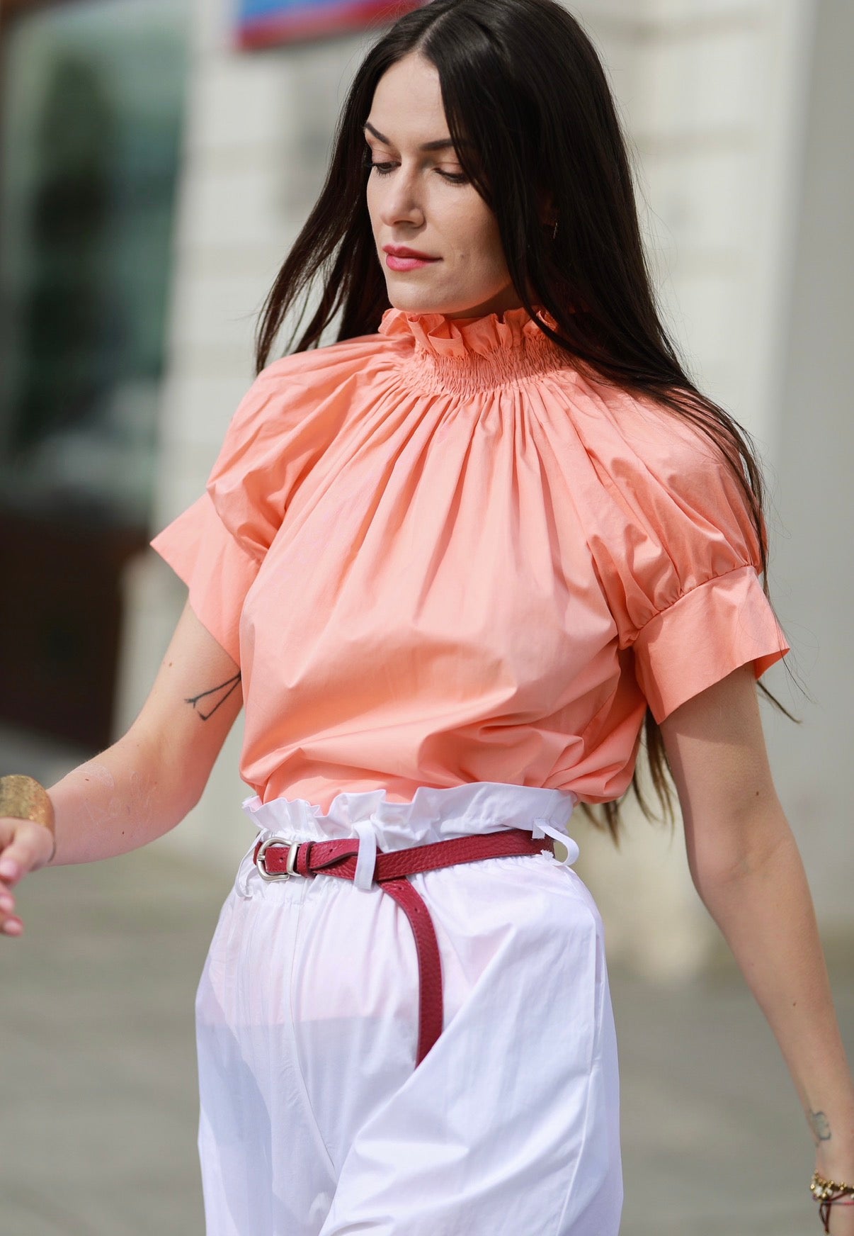 The Franka Top is a Monica Nera signature—designed to celebrate movement, femininity, and ease. Crafted from eco-certified cotton poplin, it features a gathered neckline and relaxed silhouette that drapes beautifully over the body. The soft volume, subtle texture, and airy construction make it effortlessly wearable, while still standing out with quiet elegance.